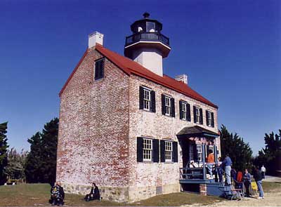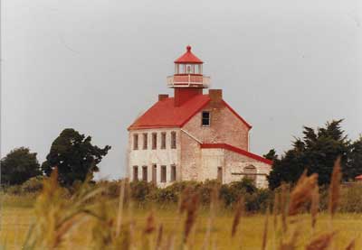 The second oldest existing lighthouse in New Jersey, East Point is in a rather remote location at the Maurice (MOR-ris) River Cove, an arm of Delaware Bay in Cumberland County. The two photos on the right show the surrounding area, the first looking southeast over Delaware Bay and the second north to the mouth of the Maurice River.