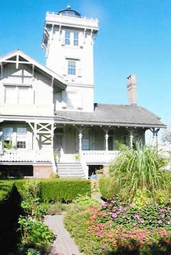 Hereford Inlet Lighthouse, like Sea Girt, is constructed in the Victorian style and went into operation in 1874 in the Anglesea section of North Wildwood on Five Mile Beach Island. Often threatened by erosion, the lighthouse was moved to its present location in 1914 and remained in service until 1964, when it was replaced by the steel tower navigational beacon which can be seen to the right of the lighthouse in the middle picture. The lighthouse is also noted for its garden, which can be seen in the other two pictures.