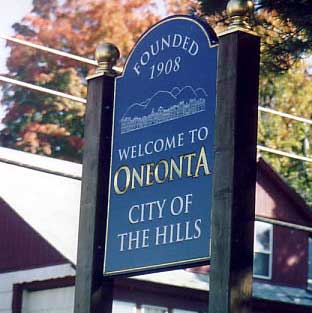Oneonta's nickname derives from its location in the Susquehanna River valley in the northern Catskills. The etymology of the city's name is uncertain, but may be a Mohawk term meaning "place of open rocks," a reference to the Tablerocks formation on the west of the city.